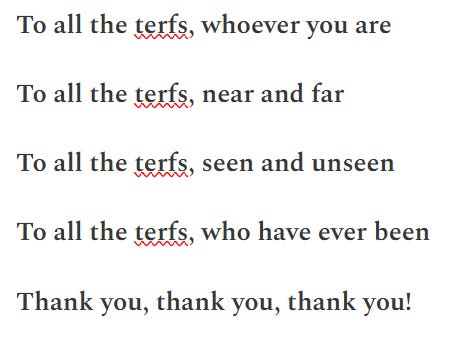 If you’re a terf, here’s my Thank a Terf verse for you -