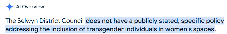 That information is nowhere immediately visible. It’s not even buried in the relevant page on Selwyn’s website, like where the Christchurch City Council buries theirs. In fact, it appears there isn’t even a policy, just an arbitrary decision made by transactivist staff at the Council.
