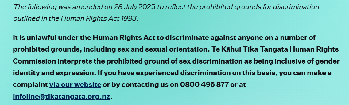 Here in New Zealand, we’ve recently been shown very clearly how our own Human Rights Commission has corrupted Human Rights legislation by inserting ‘gender’ into their interpretation of it. This was highlighted when Sport NZ made a statement on 24 July that they’d removed the transgender inclusion guidelines for community sport from their website, and ceased all related work as directed by the Government. In response, the Human Rights Commission issued a media release which erroneously said ‘gender’ and ‘gender identity and expression’ are prohibited grounds for discrimination. Upon getting pushback for that misinformation, they later amended their media release to say that they interpreted the prohibited ground of sex discrimination to include gender identity and expression.
